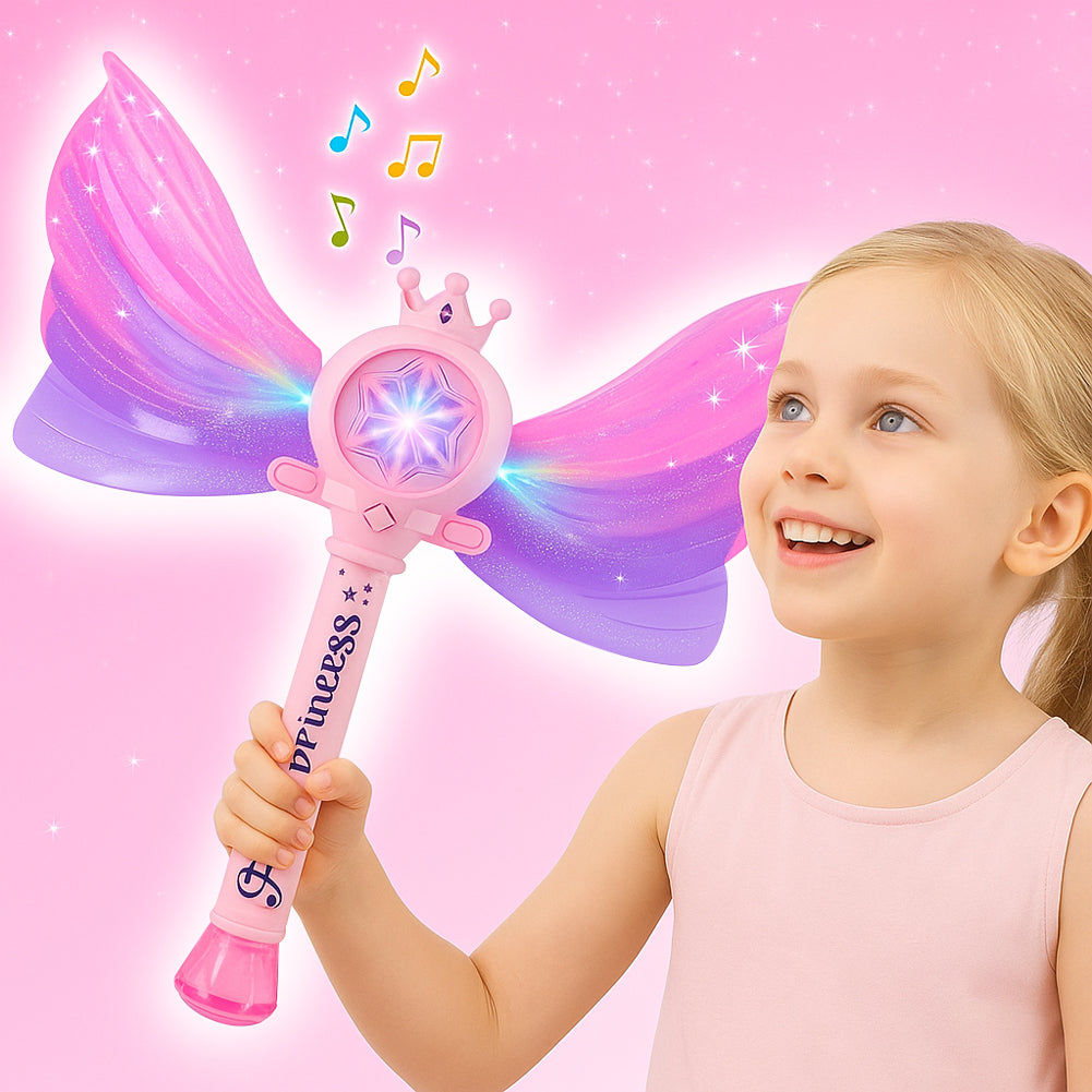Design da Principessa Incantata: Con la sua forma a bacchetta magica rosa, la corona scintillante e le ali staccabili, questo gioco trasforma ogni bambina in una vera fata delle fiabe.