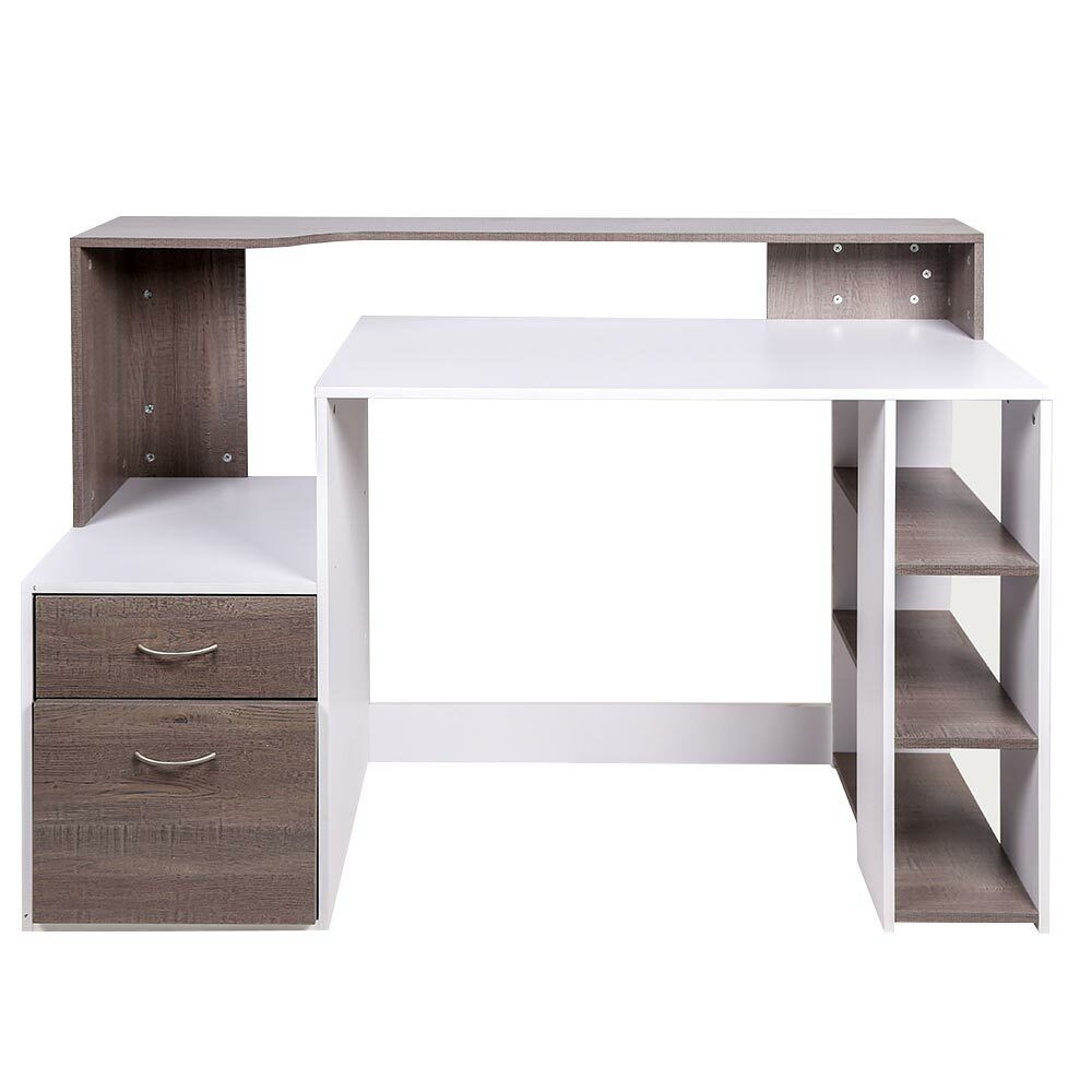 Scrivania con Cassettiera Libreria Porta Scanner Tavolo Computer Ufficio Grigio
