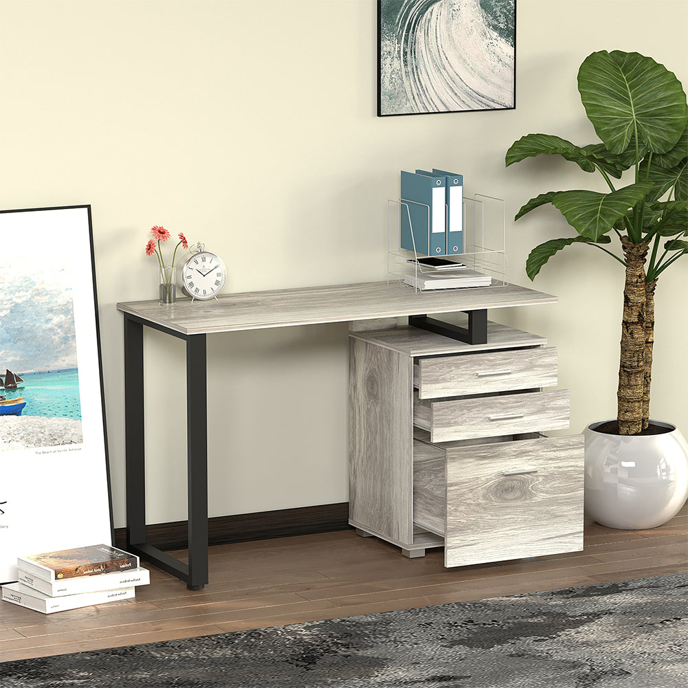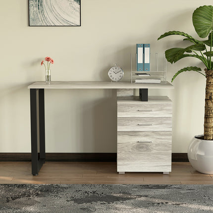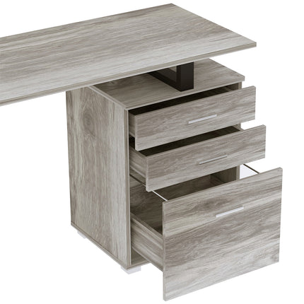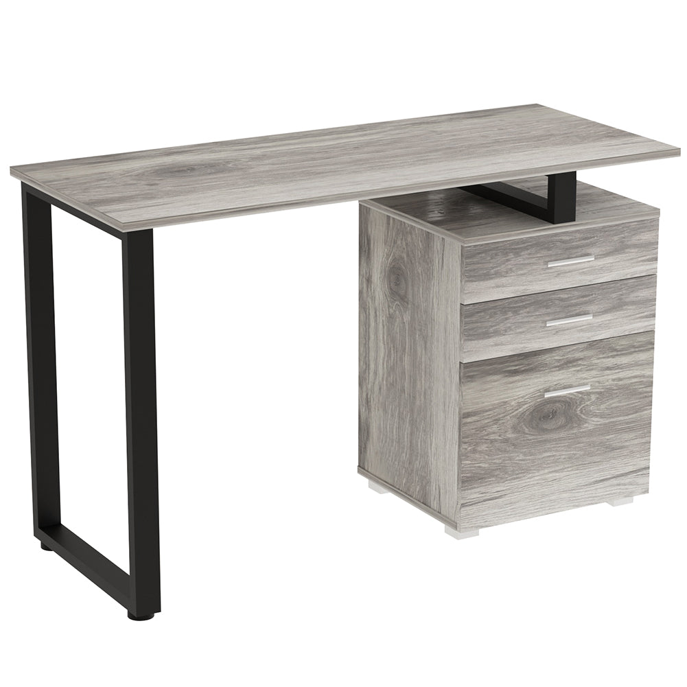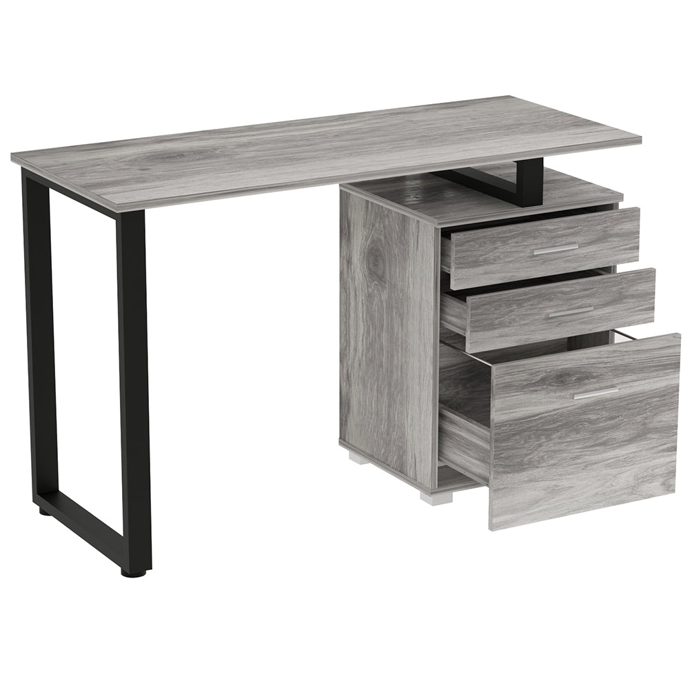 Ma ciò che rende davvero unica questa scrivania è la funzionale cassettiera a 3 cassetti realizzata in legno MDF in un elegantissimo colore legno grigio con manici in metallo, ottima per riporre documenti importanti fogli cancelleria e tutto ciò che si vuole.