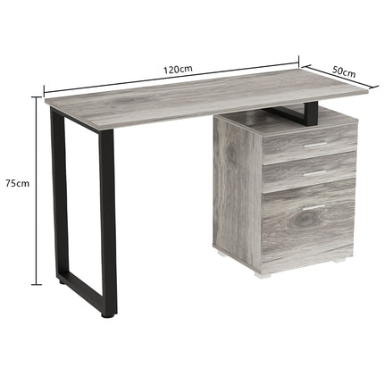 Scrivania con Cassettiera Tavolo Porta Pc Computer Acciaio Legno Ufficio Grigio