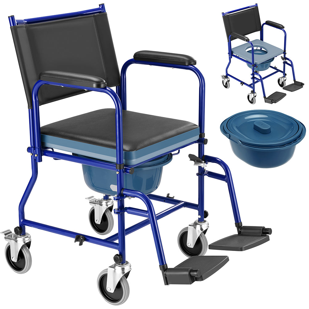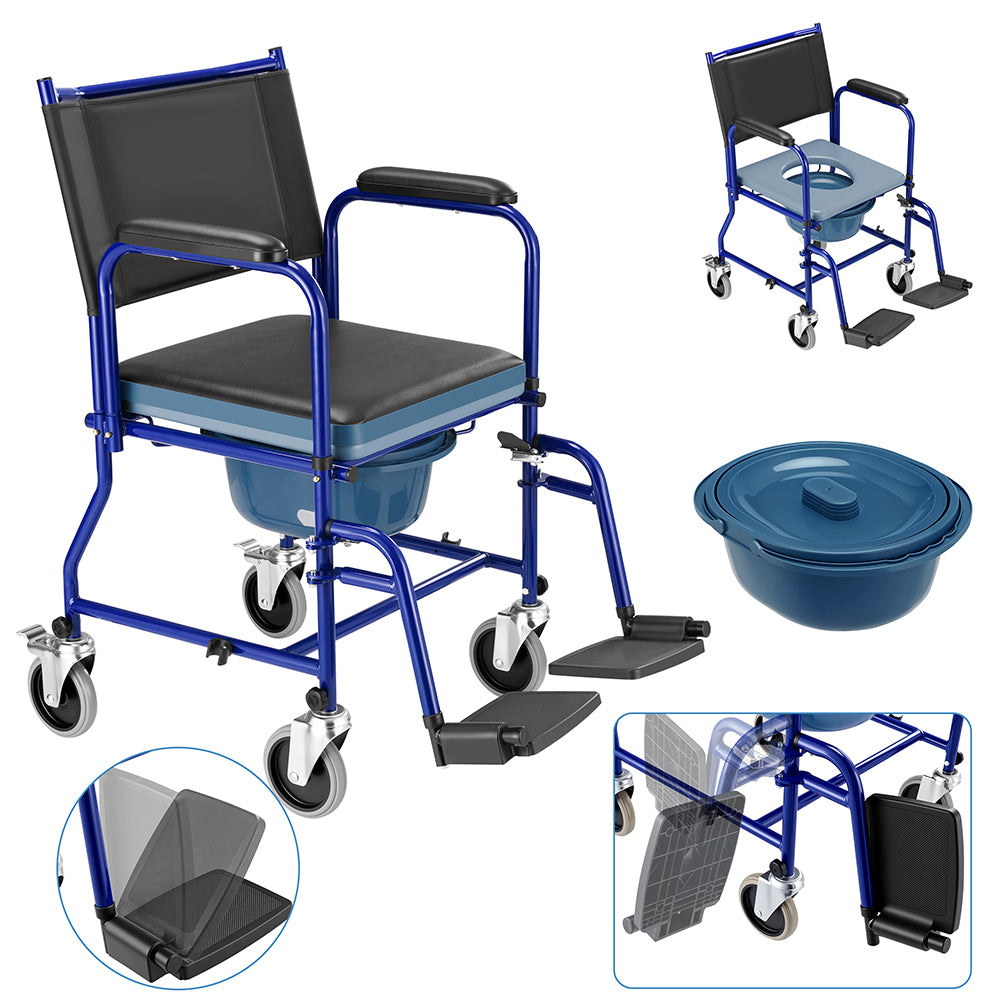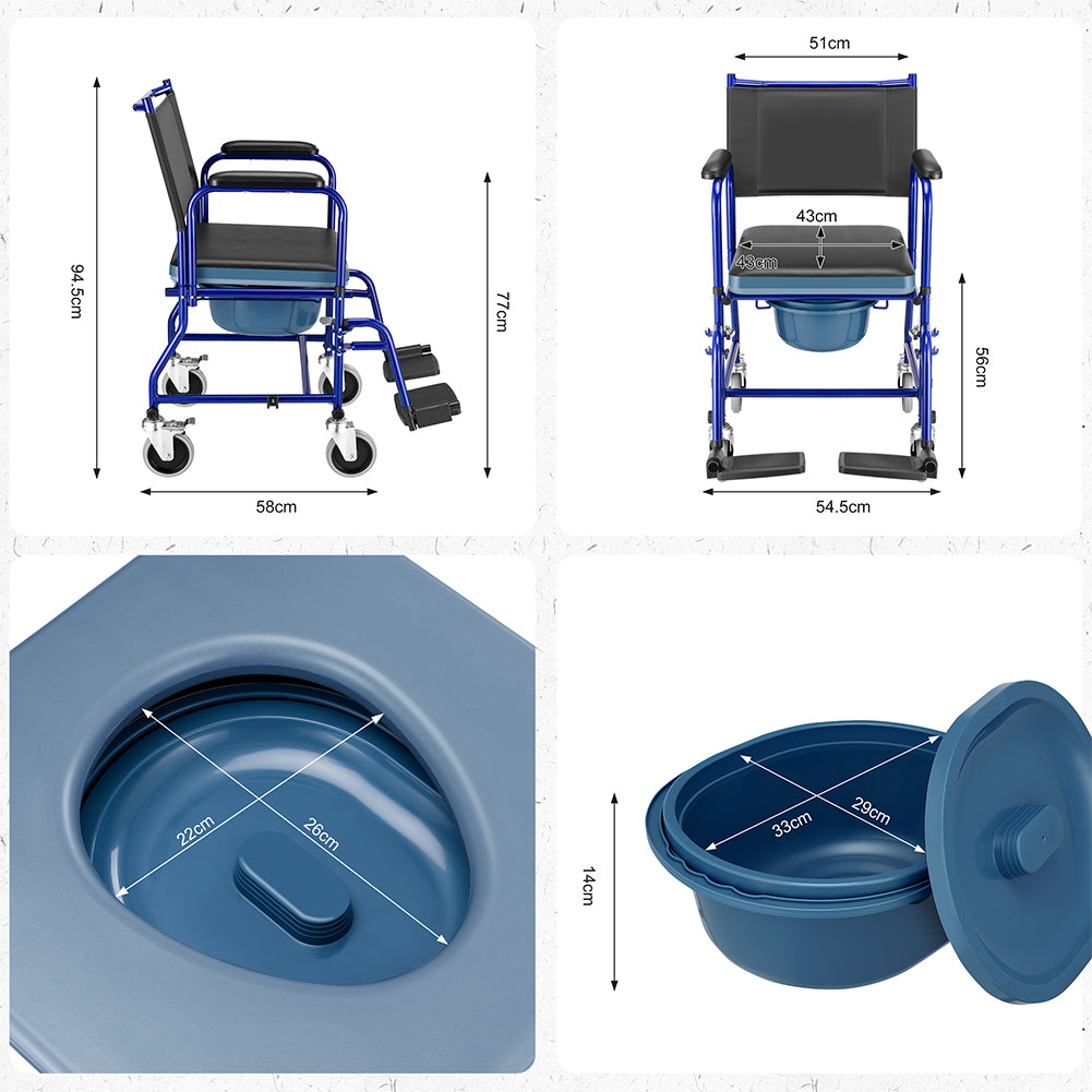 1 x Sedia a Rotelle con Poggiapiedi e Wc Estraibile con Coperchio per Anziani e Disabili