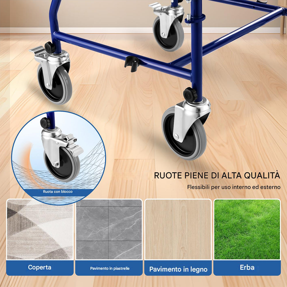 La struttura stabile supporta fino a 110 kg offrendo sicurezza durante l’utilizzo quotidiano, rendendola ideale per assistenza domiciliare, cliniche e ambienti sanitari.