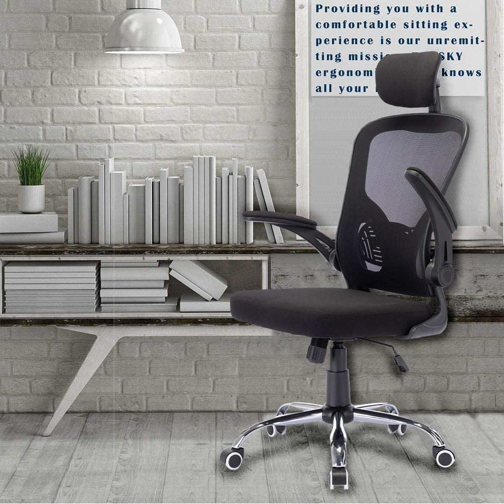 Sedia da Ufficio Ergonomica con Schienale Alto e Poggiatesta Braccioli 3D Nero