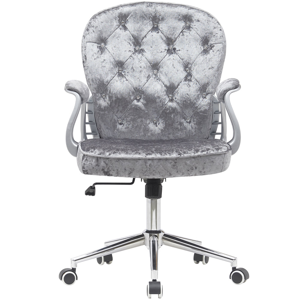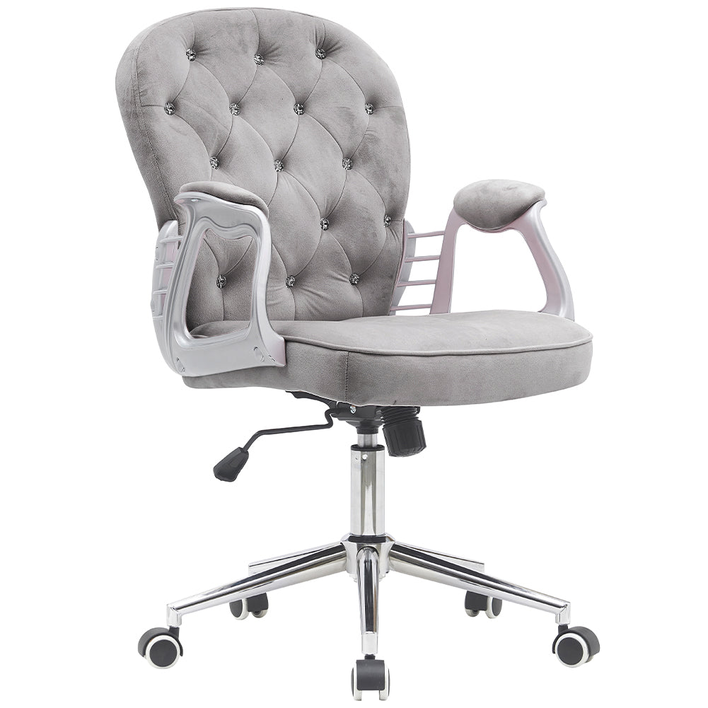 1 x Sedia da Ufficio in Velluto Grigio Poltrona Imbottita da Scrivania con Ruote