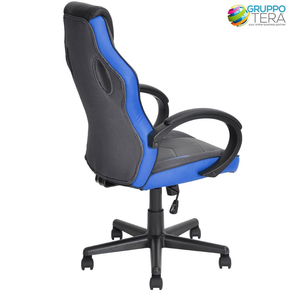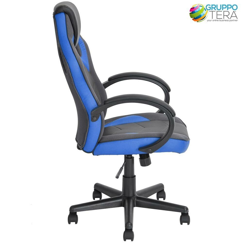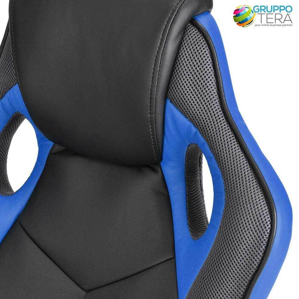 1 x Sedia Gaming Poltrona da Ufficio Direzionale Ruote Girevoli Sportiva Racer Blu