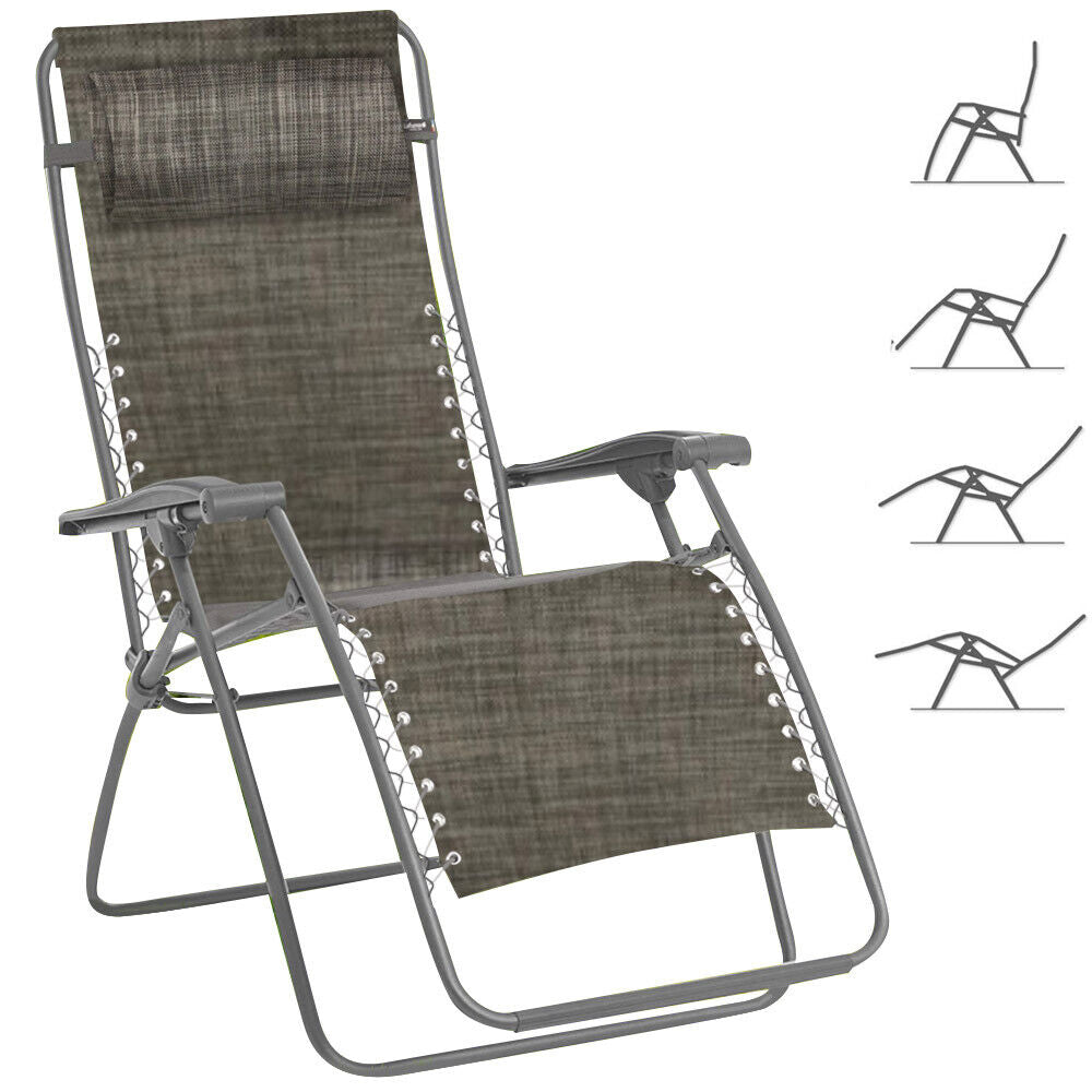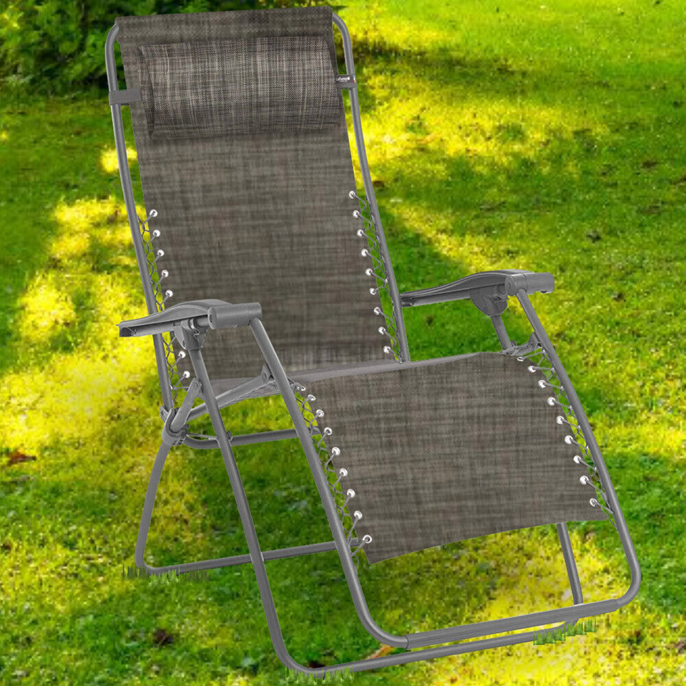 Sedia Giardino Poltrona Relax Pieghevole Gravita Zero Metallo Tessuto Grigio