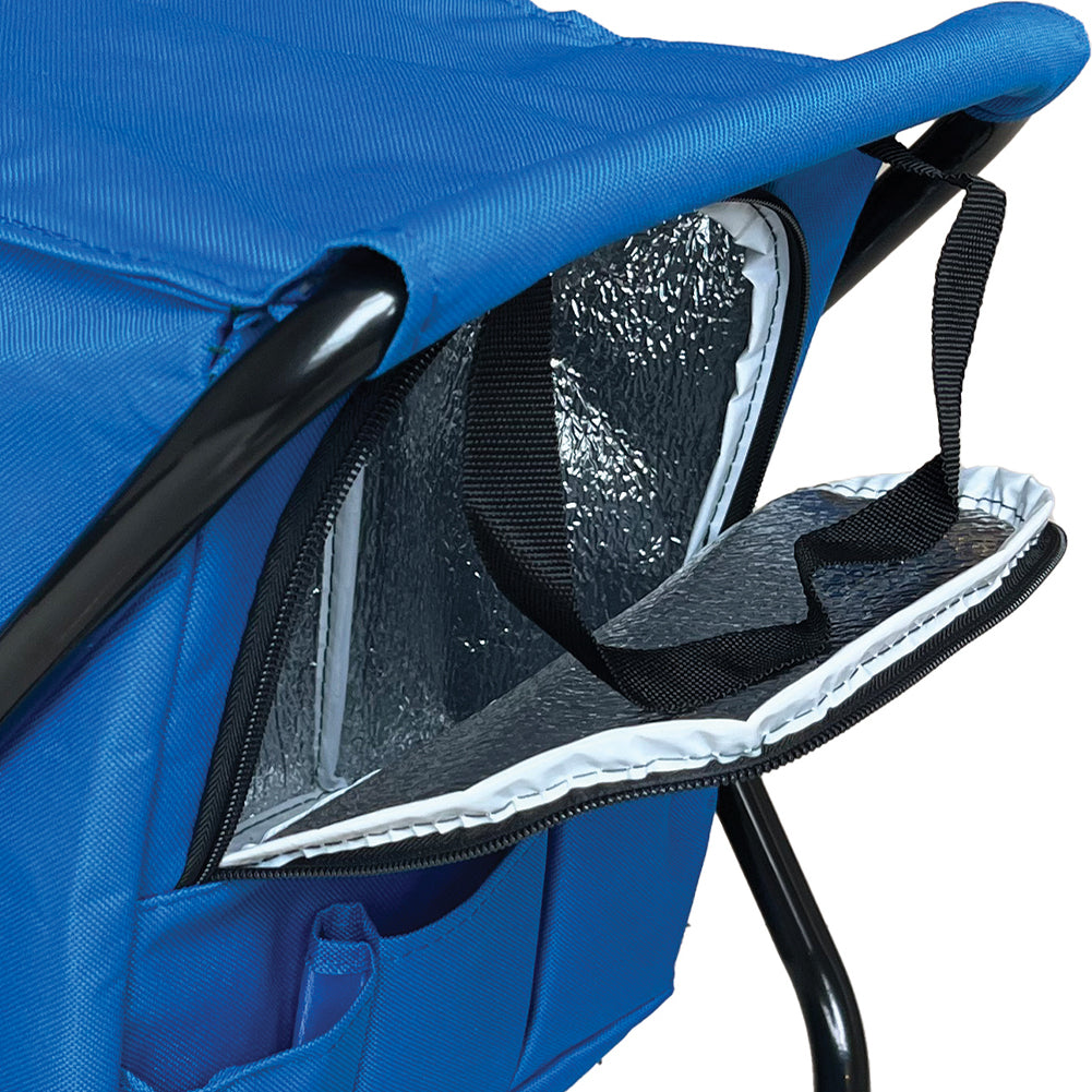 Tasca frigo integrata per massima praticità – Dotata di un ampio scomparto termico con chiusura a zip, la sedia permette di mantenere cibi e bevande alla giusta temperatura per diverse ore.