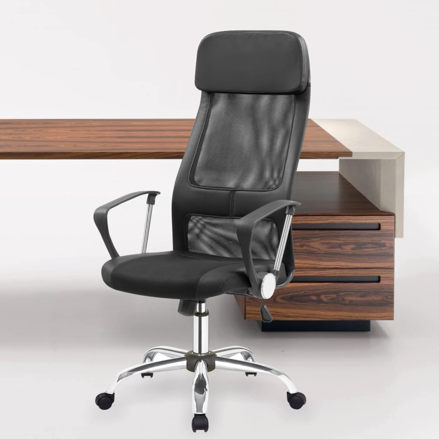 Sedia Poltrona da Ufficio Base in Pelle Design Ergonomico Traspirante Acciaio