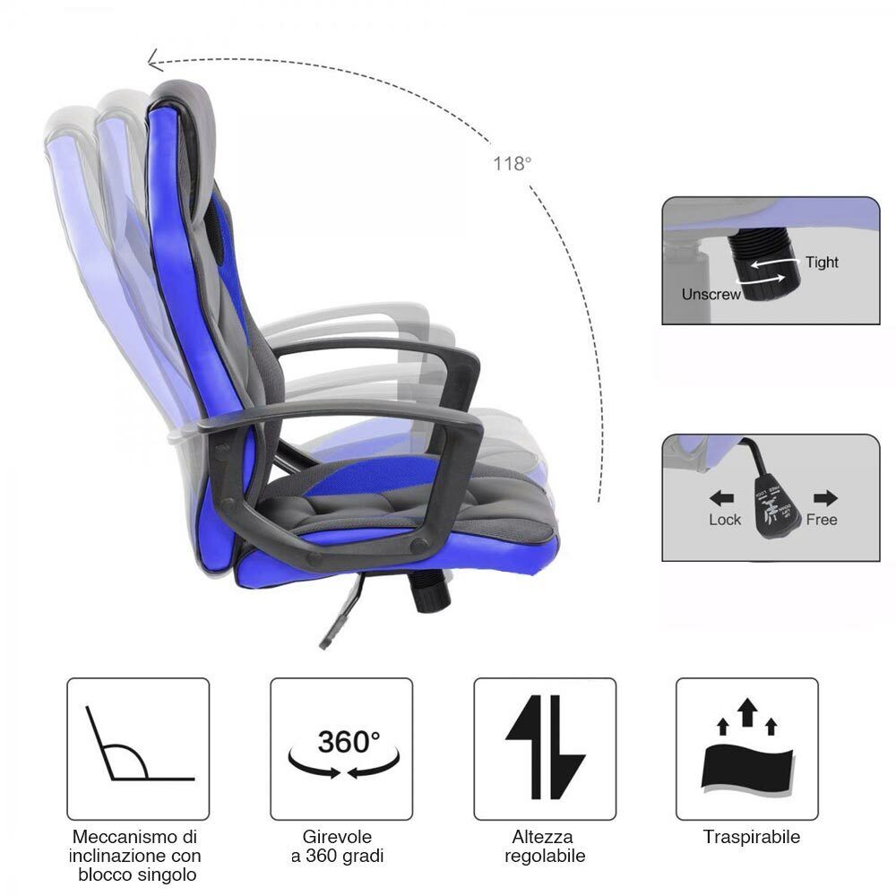 Sedia Poltrona Gaming Scrivania Ufficio Casa Regolabile Girevole Direzionale Blu