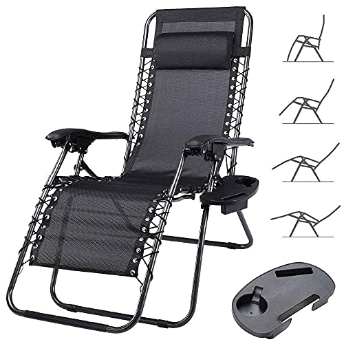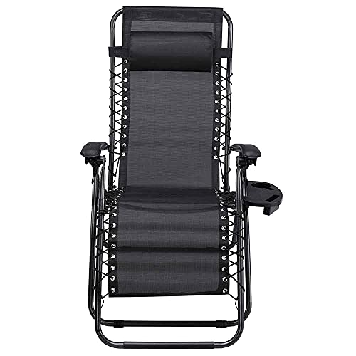 Sedia Poltrona Giardino Gravita Zero Pieghevole Acciaio Oxford con Vassoio Nero