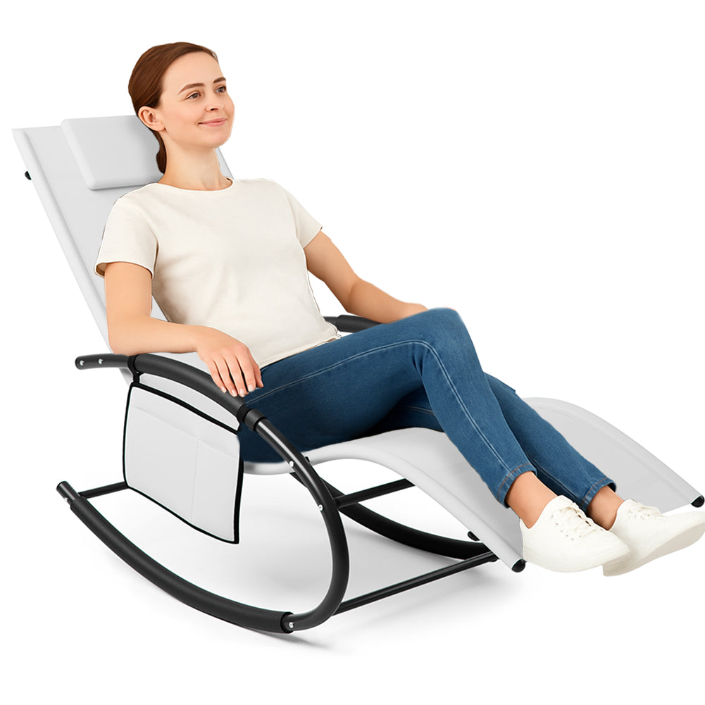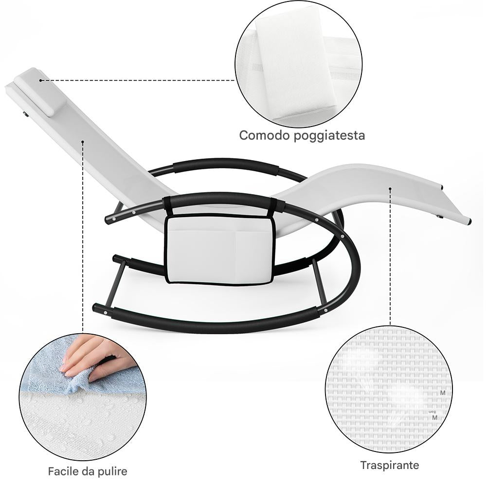 Sedia Sdraio a Dondolo Gravita Zero Lettino Prendisole Giardino Textilene Bianco