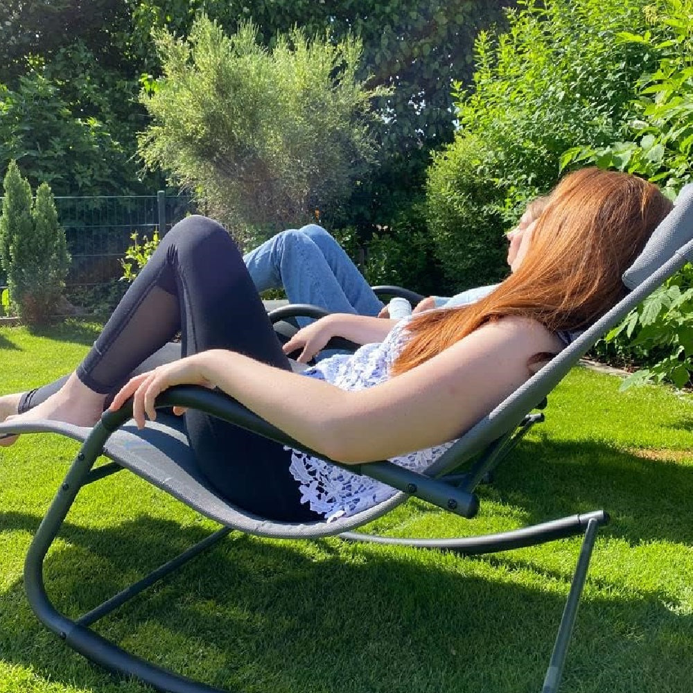 Sedia Sdraio Dondolo per Esterni con Cuscino Imbottito Design Ergonomico Grigio