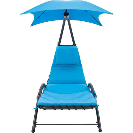 1 x Lettino Sdraio Prendisole con Ombrellone Parasole Amaca da Giardino in Acciaio Blu