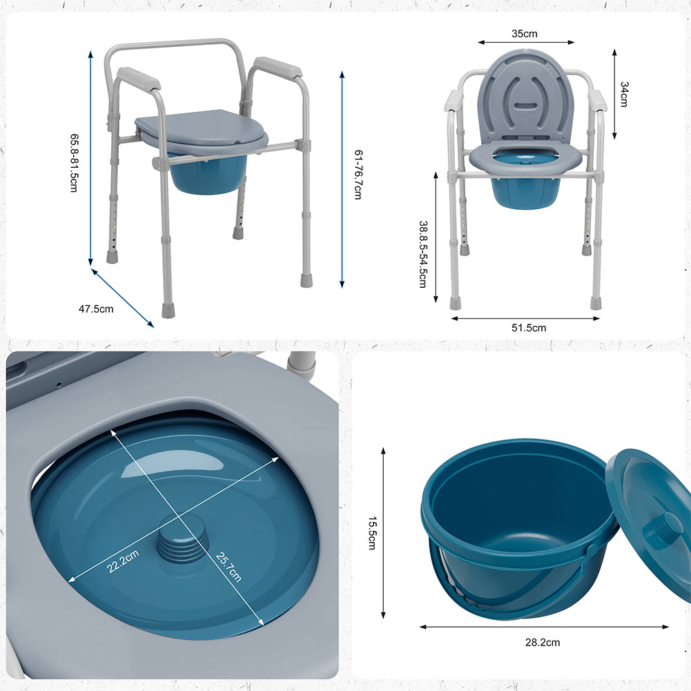 Dotata di pratico secchio rimovibile con coperchio, questa sedia comoda garantisce massima igiene e facilità di pulizia. Il contenitore può essere rimosso rapidamente per lo svuotamento e la sanificazione.