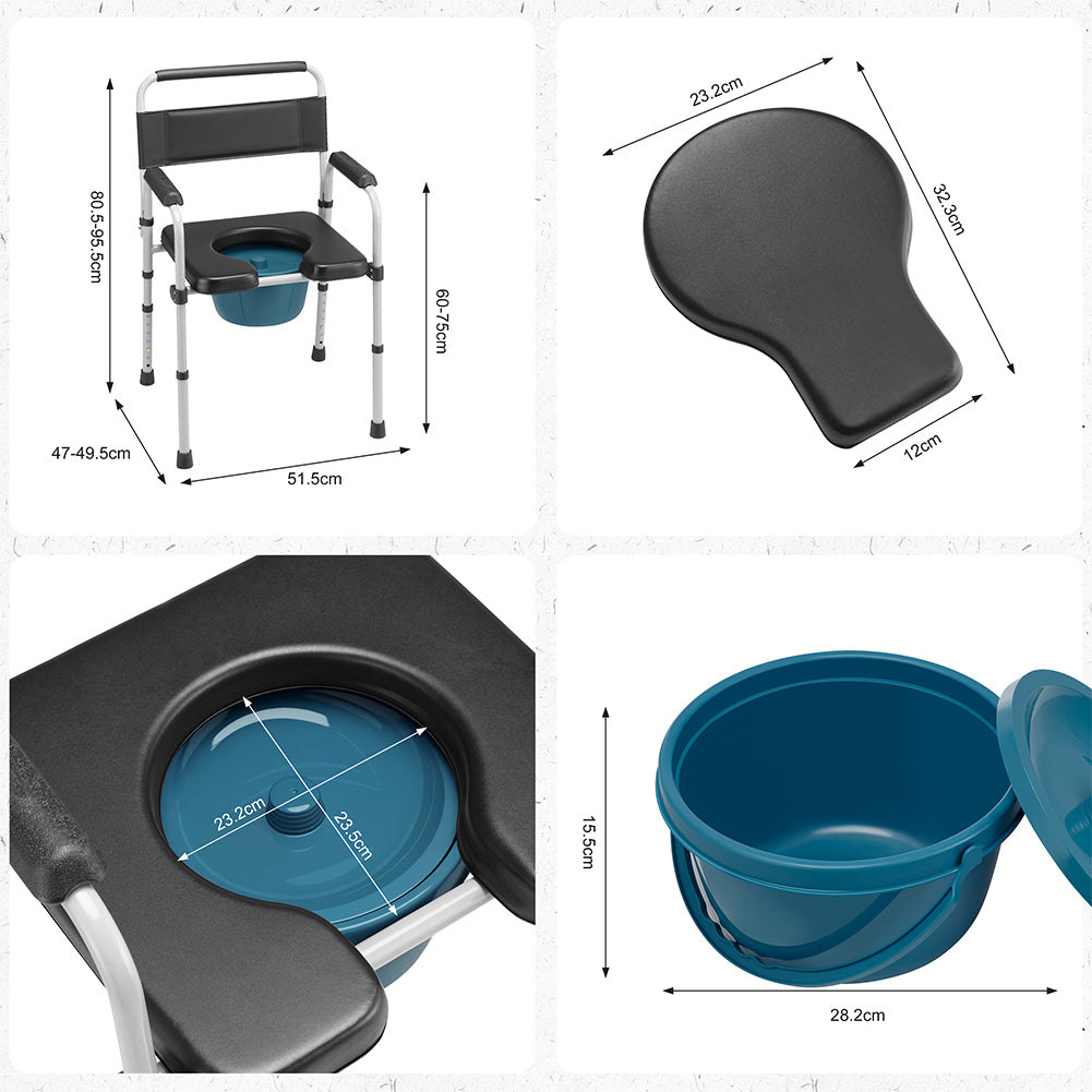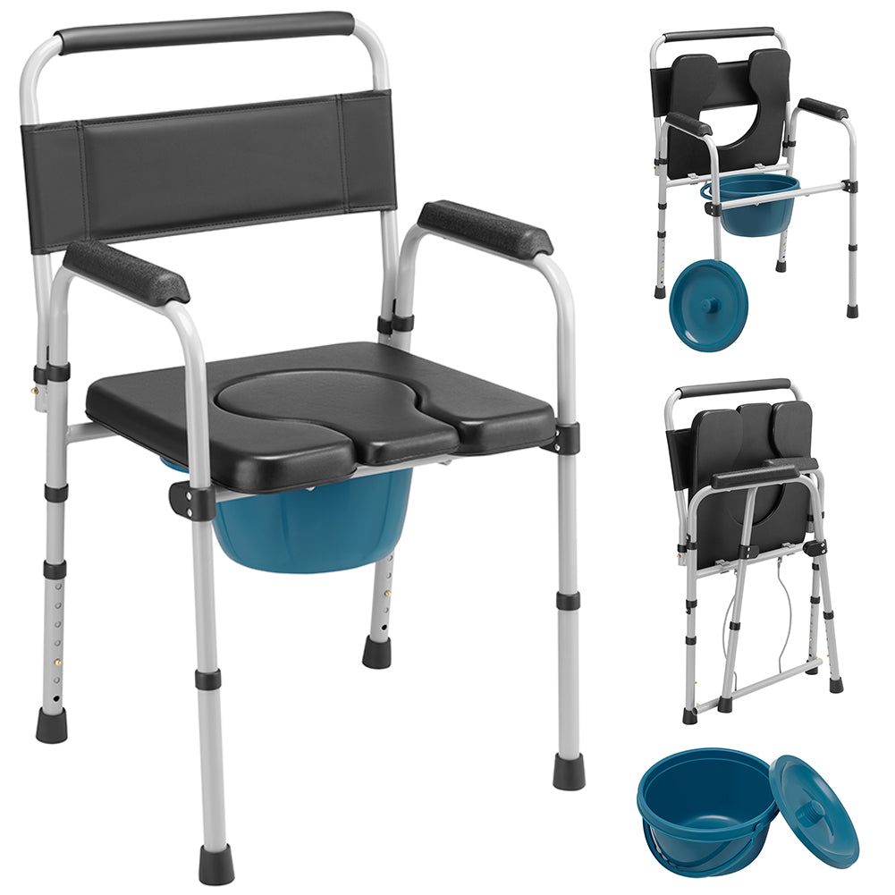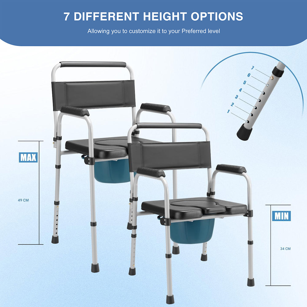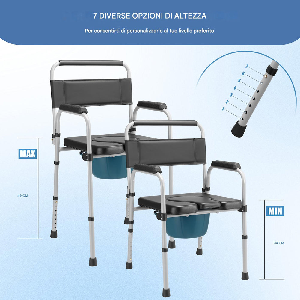 1 x Sedia Wc in Metallo ed Ecopelle Secchio e Coperchio Anziani Altezza Regolabile