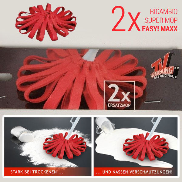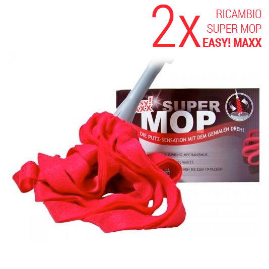 Set 2 Pezzi Ricambi Super Mop EASY MAXX Rosso Mocio Lavapavimenti Pulisci Casa