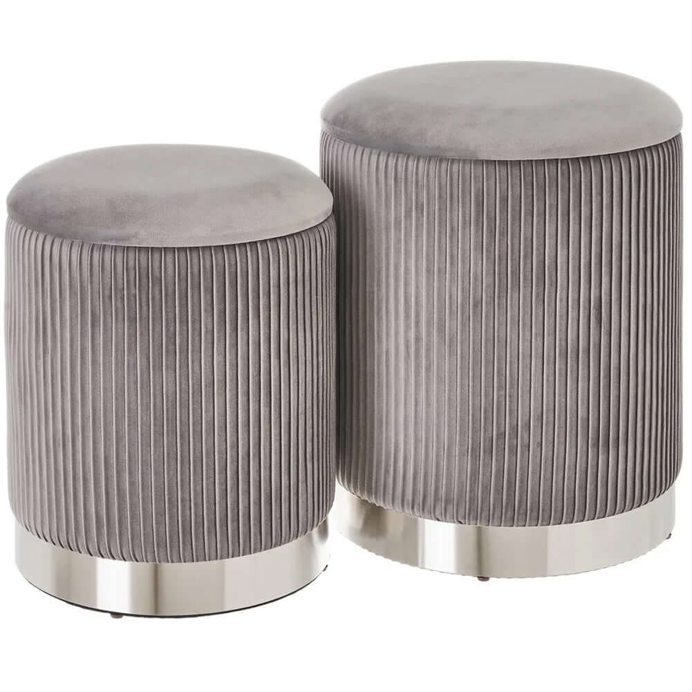 1 x Set 2 Pouf Contenitore Grigio Velluto Sgabello Poggiapiedi Rotondo Portata 120kg
