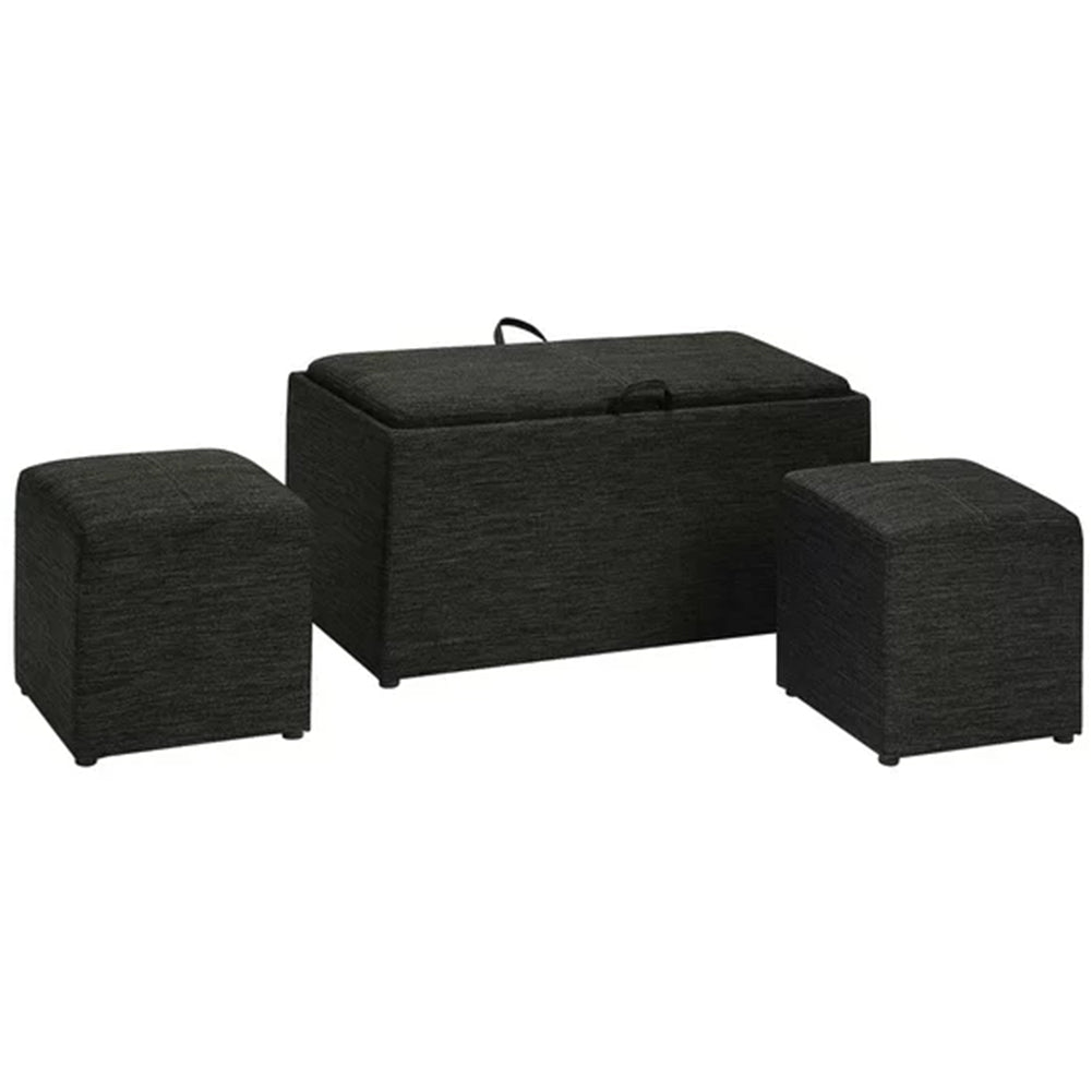 1 x Set 2 Pouf e Cassapanca in Tessuto Grigio Coperchio 2in1 e Scomparto Contenitore