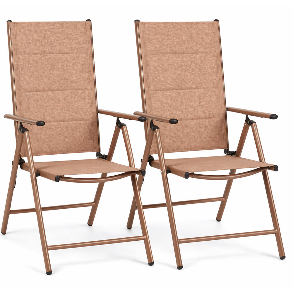 Pratico set composto da 2 sedie pieghevoli ideali per giardino, terrazzo, balcone o campeggio.
