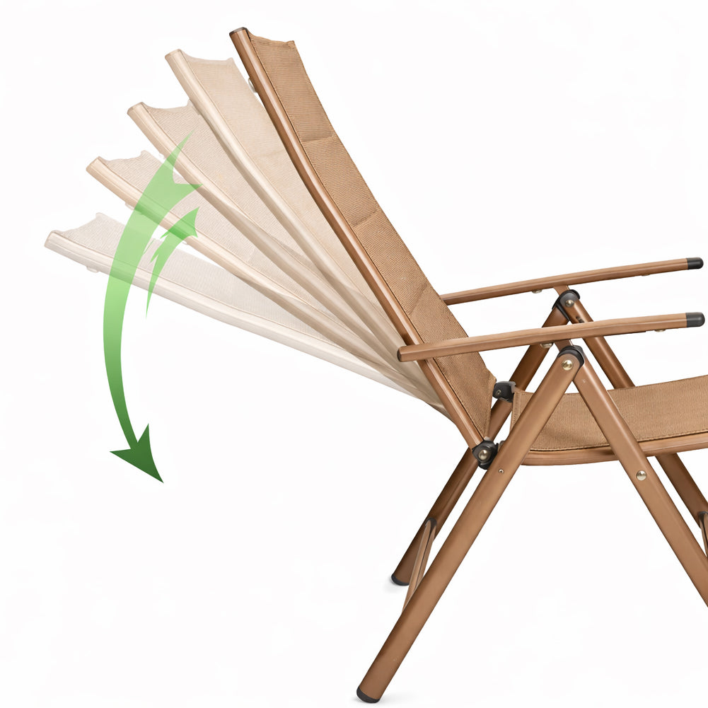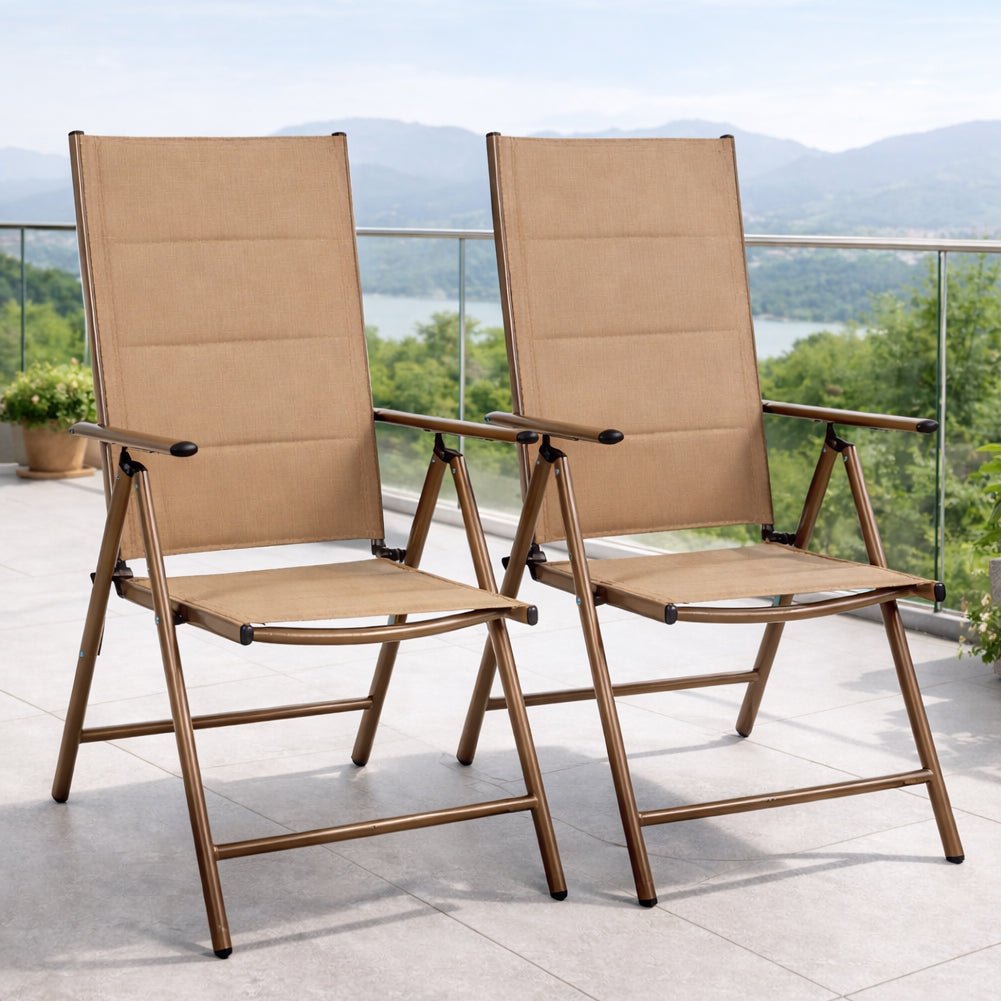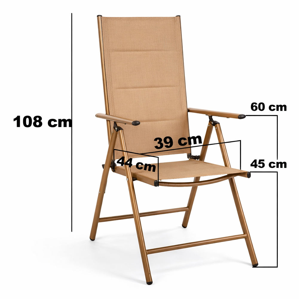 1 x Set 2 Sedie Sdraio Beige Pieghevoli e Salvaspazio con Schienale Alto Ergonomico