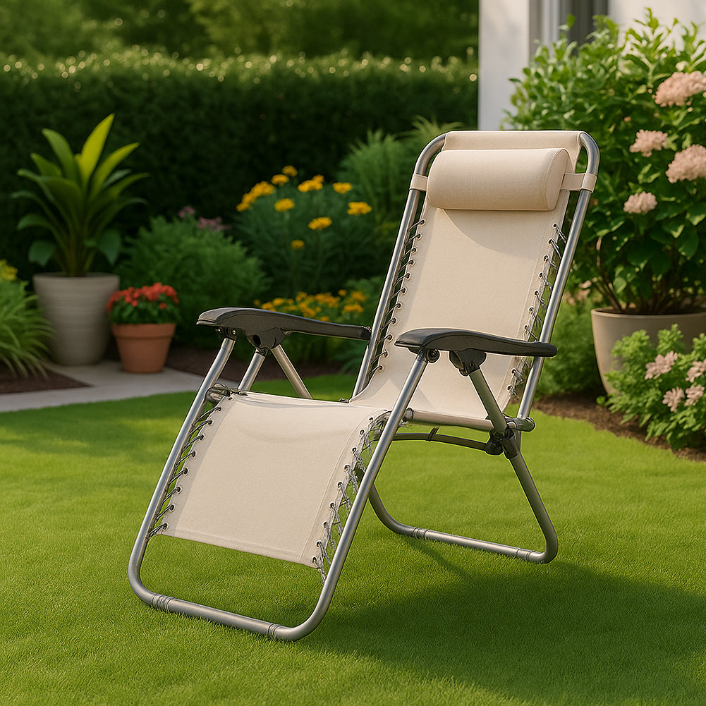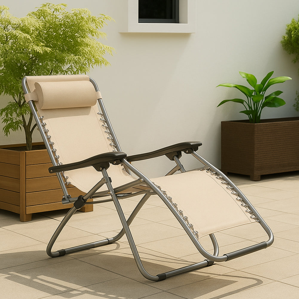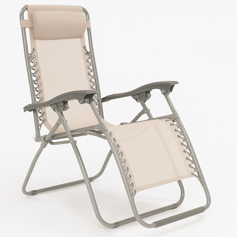 1 x Set 2 Sedie Sdraio Gravità Zero Beige in Textilene con Cuscino Struttura Acciaio
