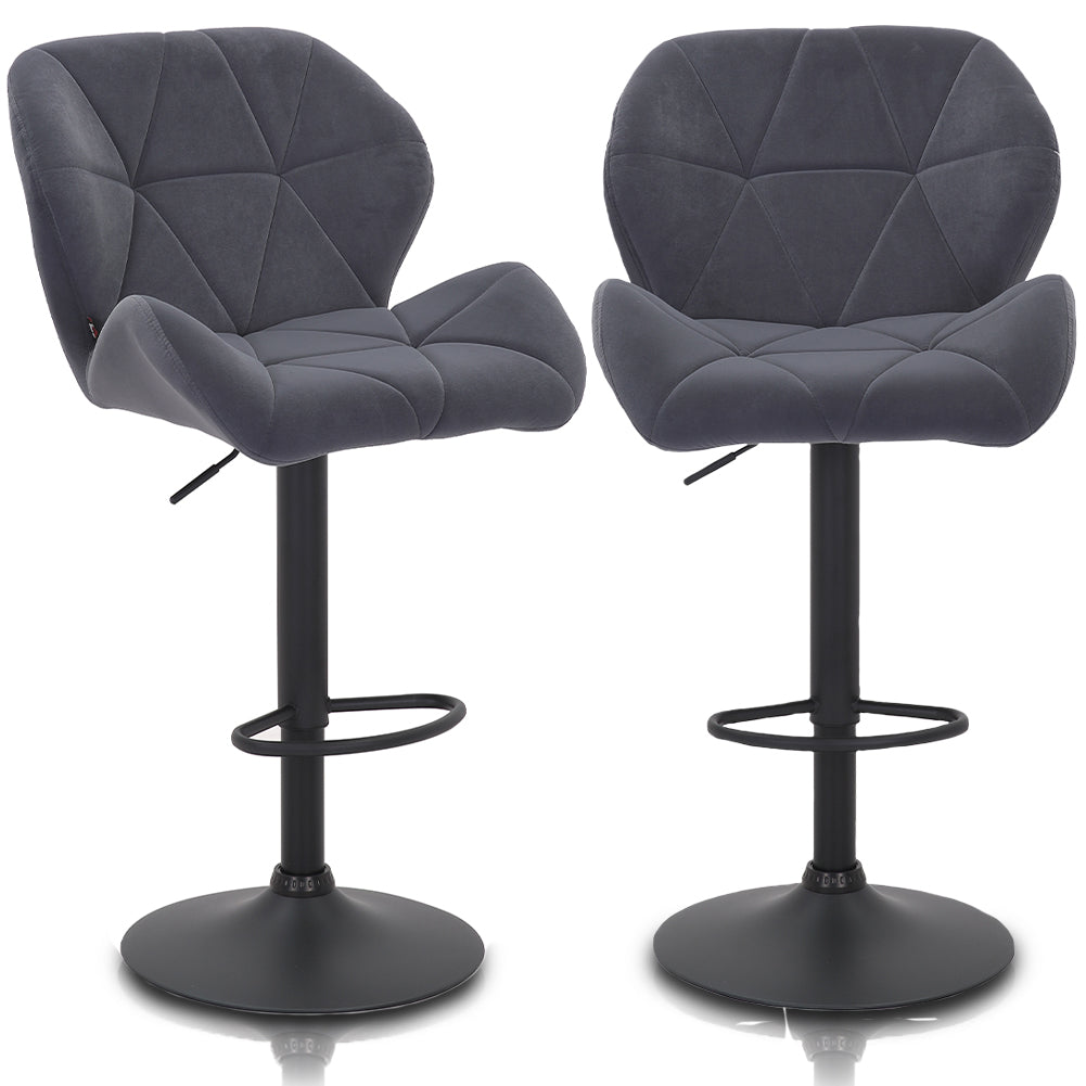 1 x Set 2 Sgabelli Cucina Regolabile Seduta Velluto Sgabello Grigio Scuro Casa Bar