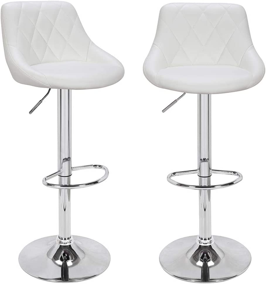 Set 2 Sgabelli Cucina Seduta Pelle Imbottita Sgabello Girevole Casa Bar Bianco
