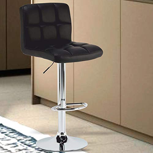 1 x Set 2 Sgabelli da Bar Cucina Seduta Schienale in Ecopelle Nero con Poggiapiedi