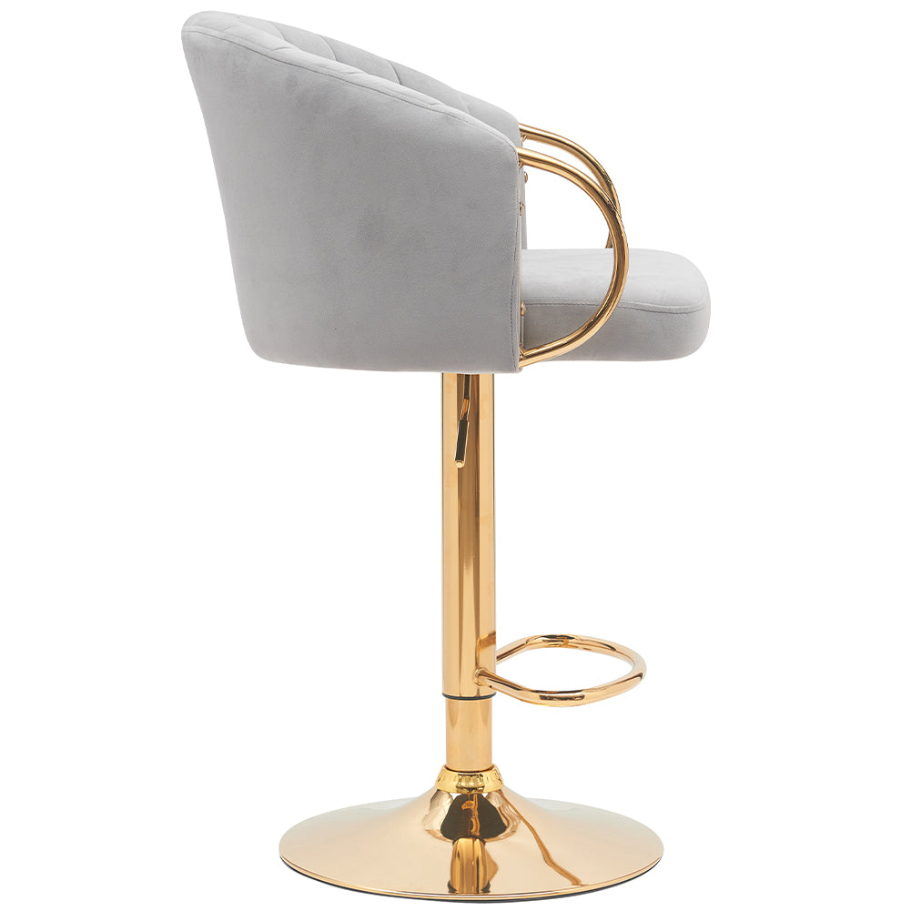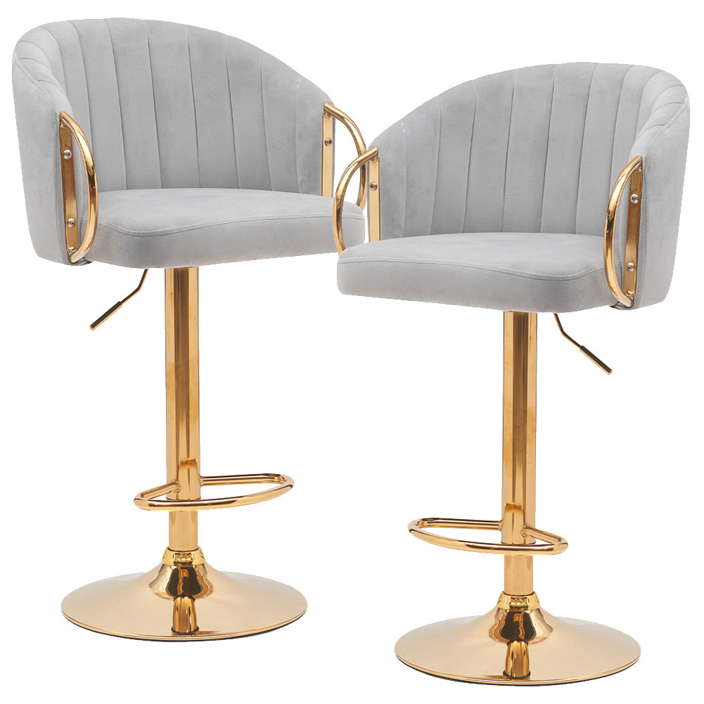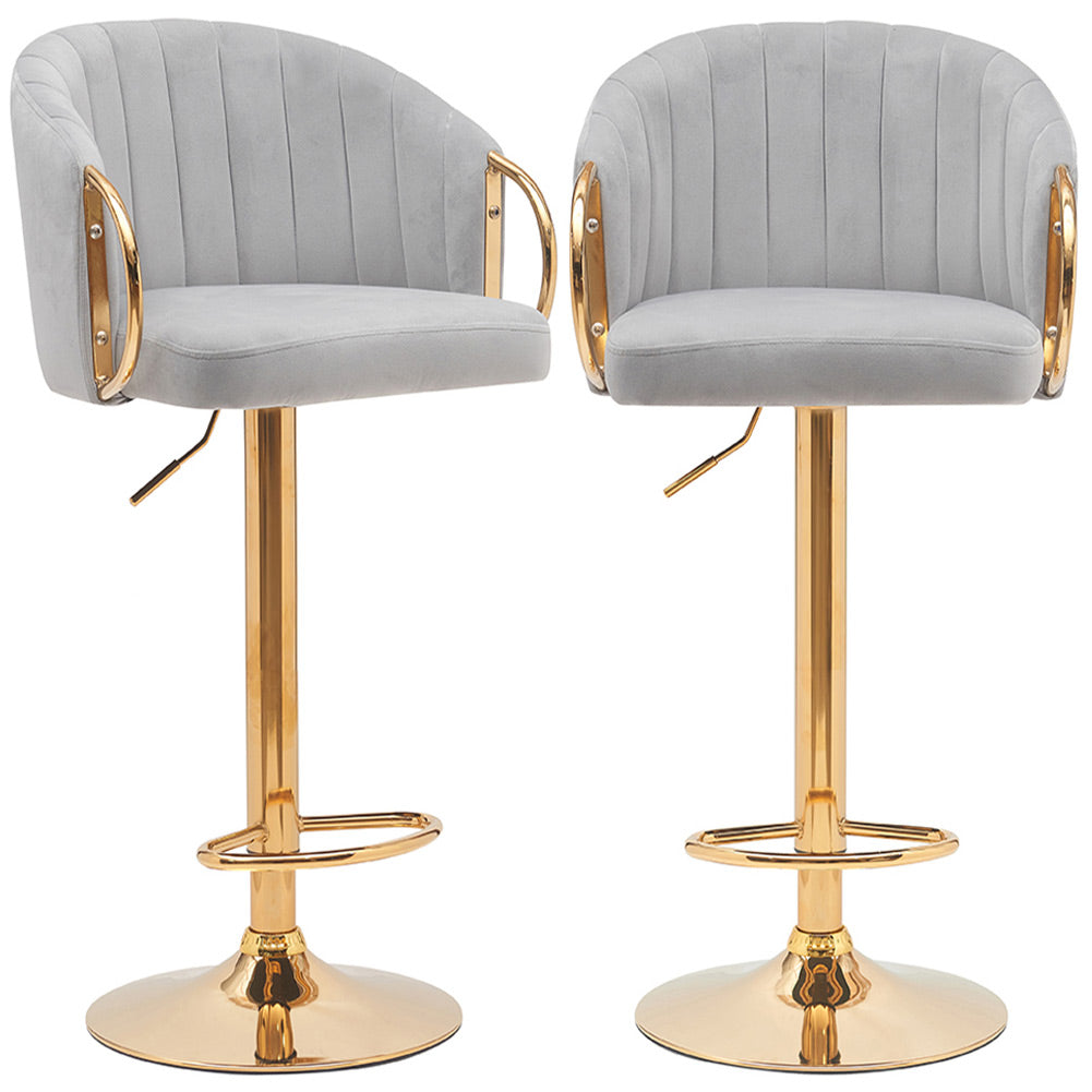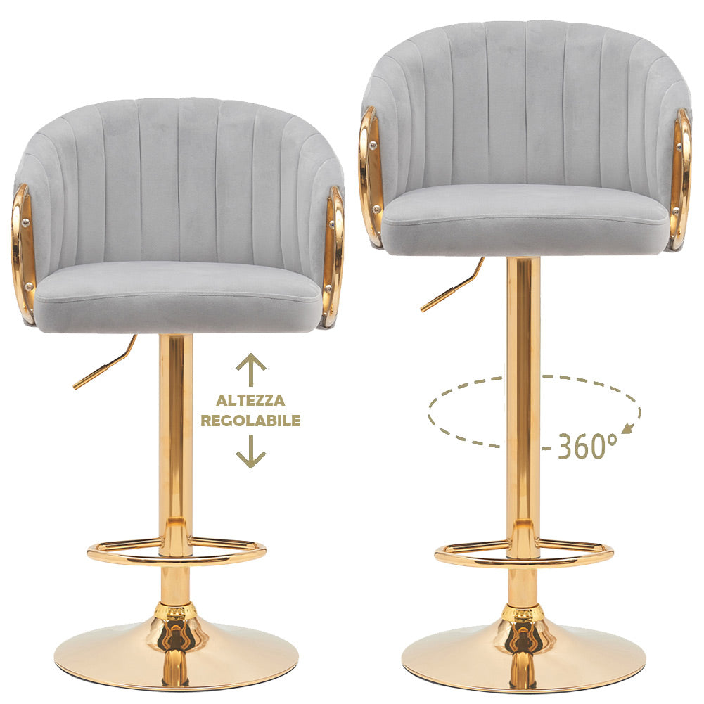 1 x Set 2 Sgabelli da Cucina Altezza Regolabile in Velluto Grigio e Struttura Oro