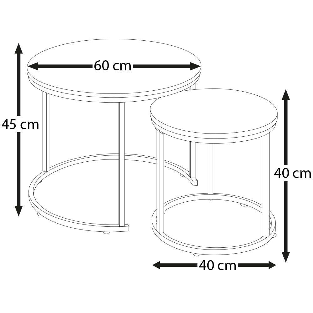 Questo bellissimo set di tavolini rotondi di due dimensioni diverse è molto elegante e possiede un design affascinante, pensato per gli spazi piccoli e può essere un'ottima aggiunta ai tuoi ambienti.