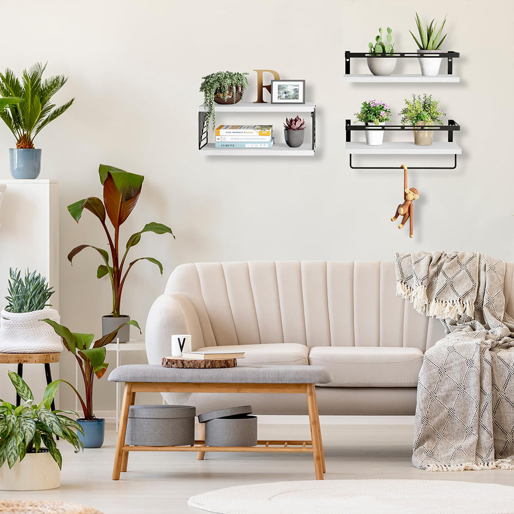 Il nostro prodotto è un'ottima scelta per tutti i tipi di spazi. È possibile organizzare condimenti, piatti, tazze e utensili da appendiabiti in cucina; conservare i prodotti per l'igiene personale e appendere gli asciugamani in bagno; esporre piante, trofei, oggetti da collezione, libri e foto, nel soggiorno... Gli scaffali aiuteranno la tua casa a diventare più organizzata e più accogliente.