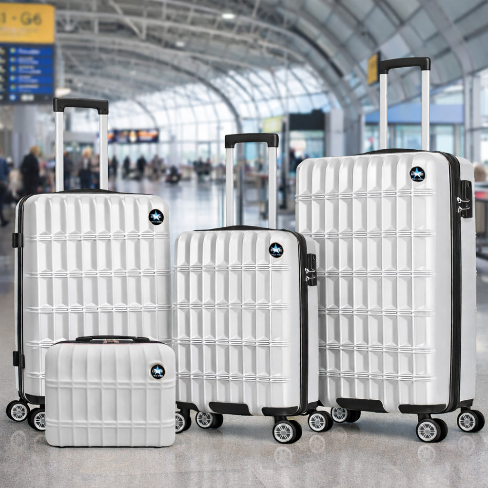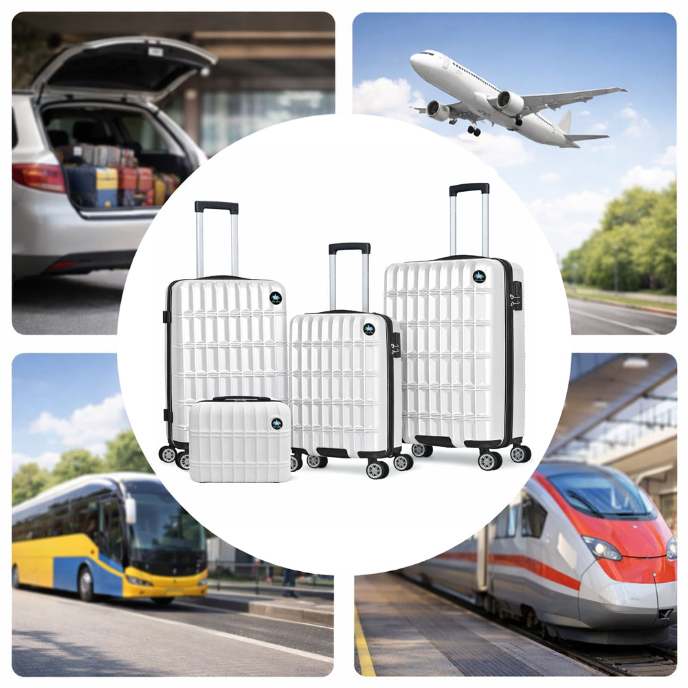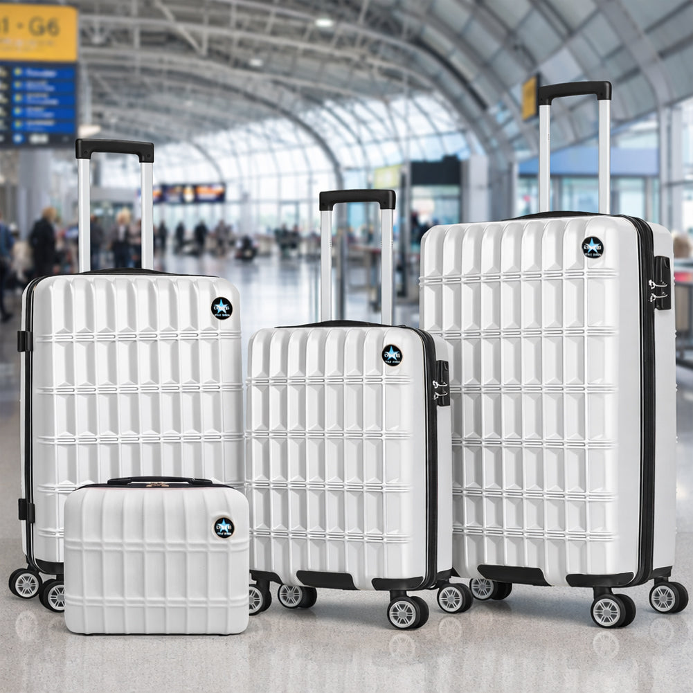 1 x Set 3+1 Valigie e Beauty Case da Viaggio Bianco Rivestimento Rigido e Resistente