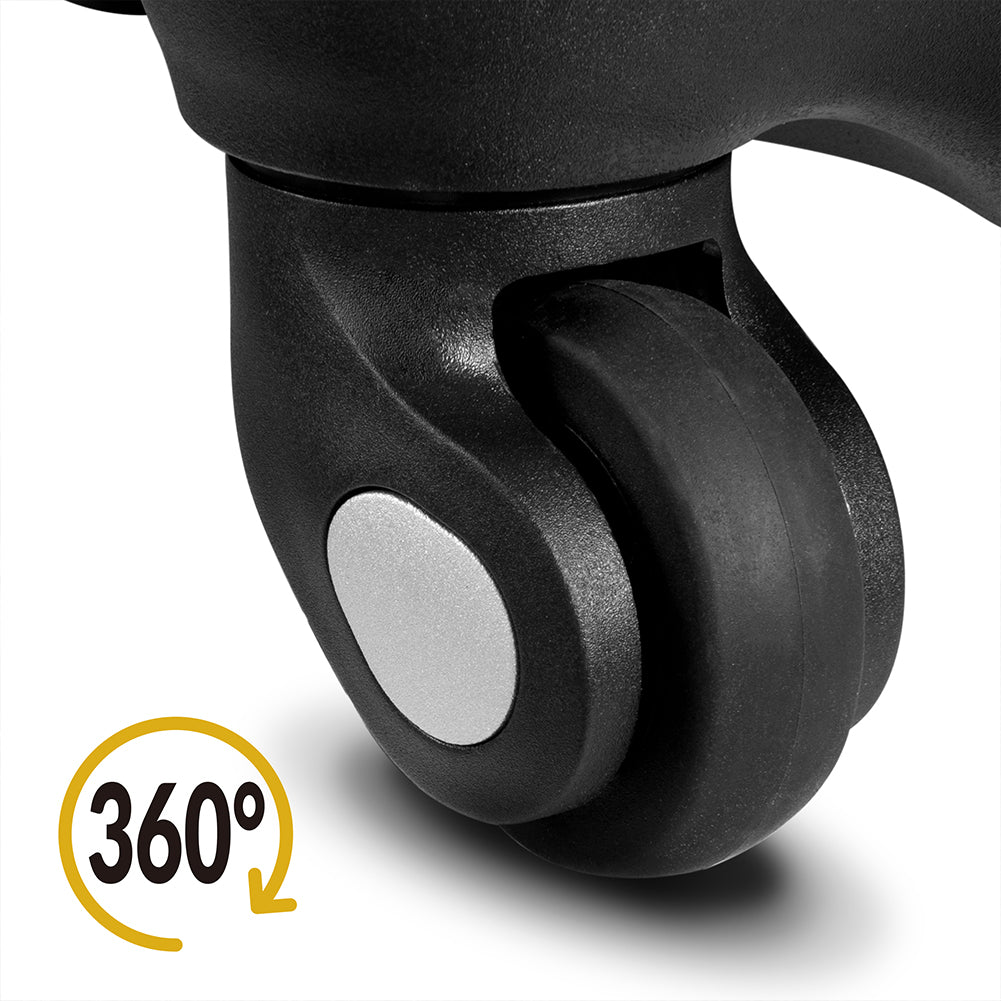 Le ruote scorrevoli sono dotate di una tecnologia easy roll che le permette di girare agilmente a 360°, consentendoti di camminare velocemente tenendo il trolley in verticale come se fosse un carrello!