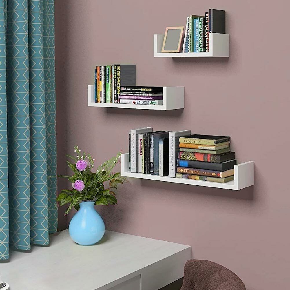 Set 3 Mensole da Parete Moderne Design con Bordi Mensola Scaffale Legno Bianco