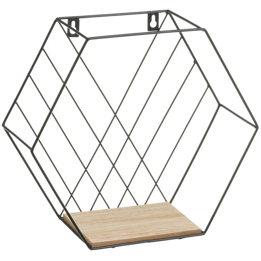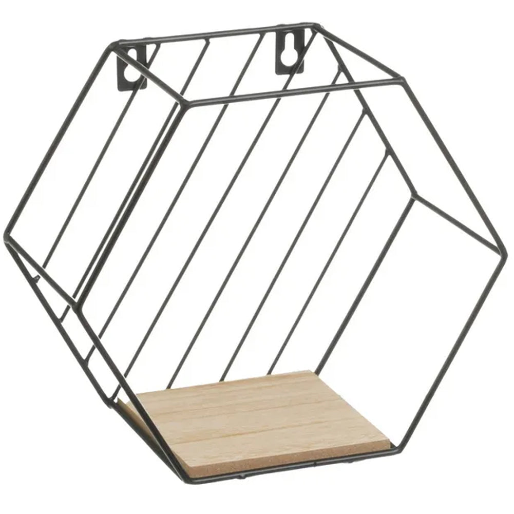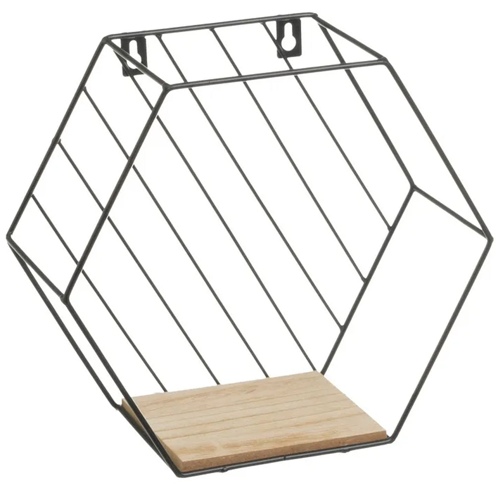 1 x Set 3 Mensole Esagonale da Parete Design Industrial Scaffale Nero Legno Naturale