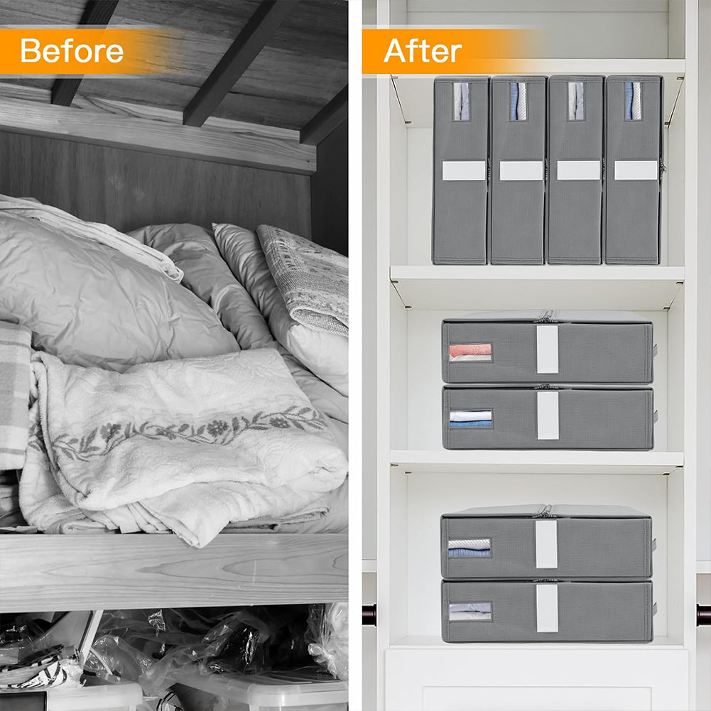 Materiali di alta qualità e design traspirante: Realizzati in tessuto non tessuto grigio, resistente, inodore e traspirante, questi organizer proteggono la tua biancheria da polvere e umidità, mantenendo tutto fresco e perfettamente ordinato nel tuo armadio.