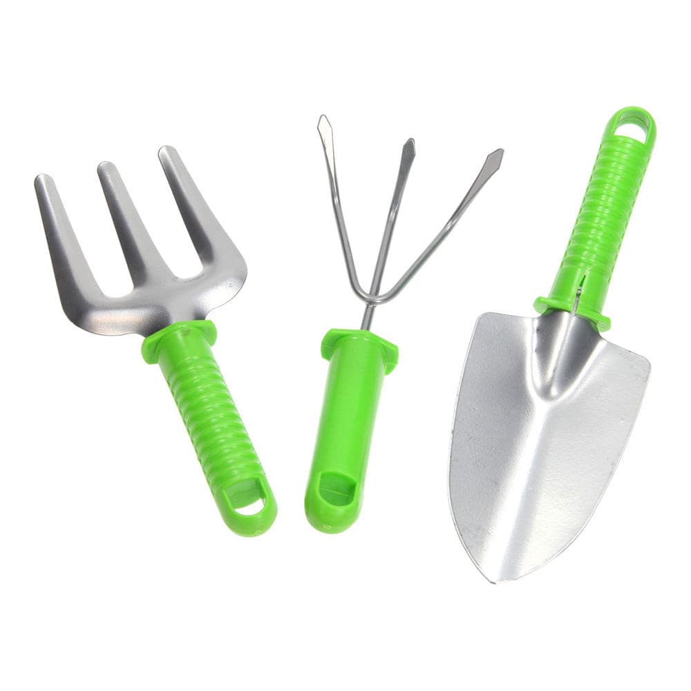 Set 3 Pezzi Utensili Giardinaggio Rastrello Pala Maniglia Manutenzione Giardino