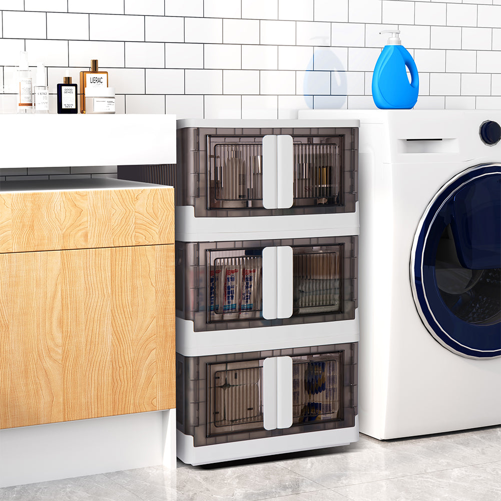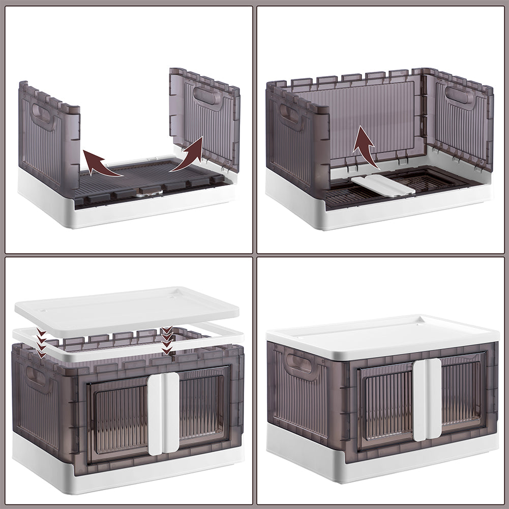 Questo portaoggetti in plastica utilizza un design pieghevole salvaspazio, Può infatti essere richiuso e collocato sotto il pavimento quando non viene utilizzato, senza occupare spazio.