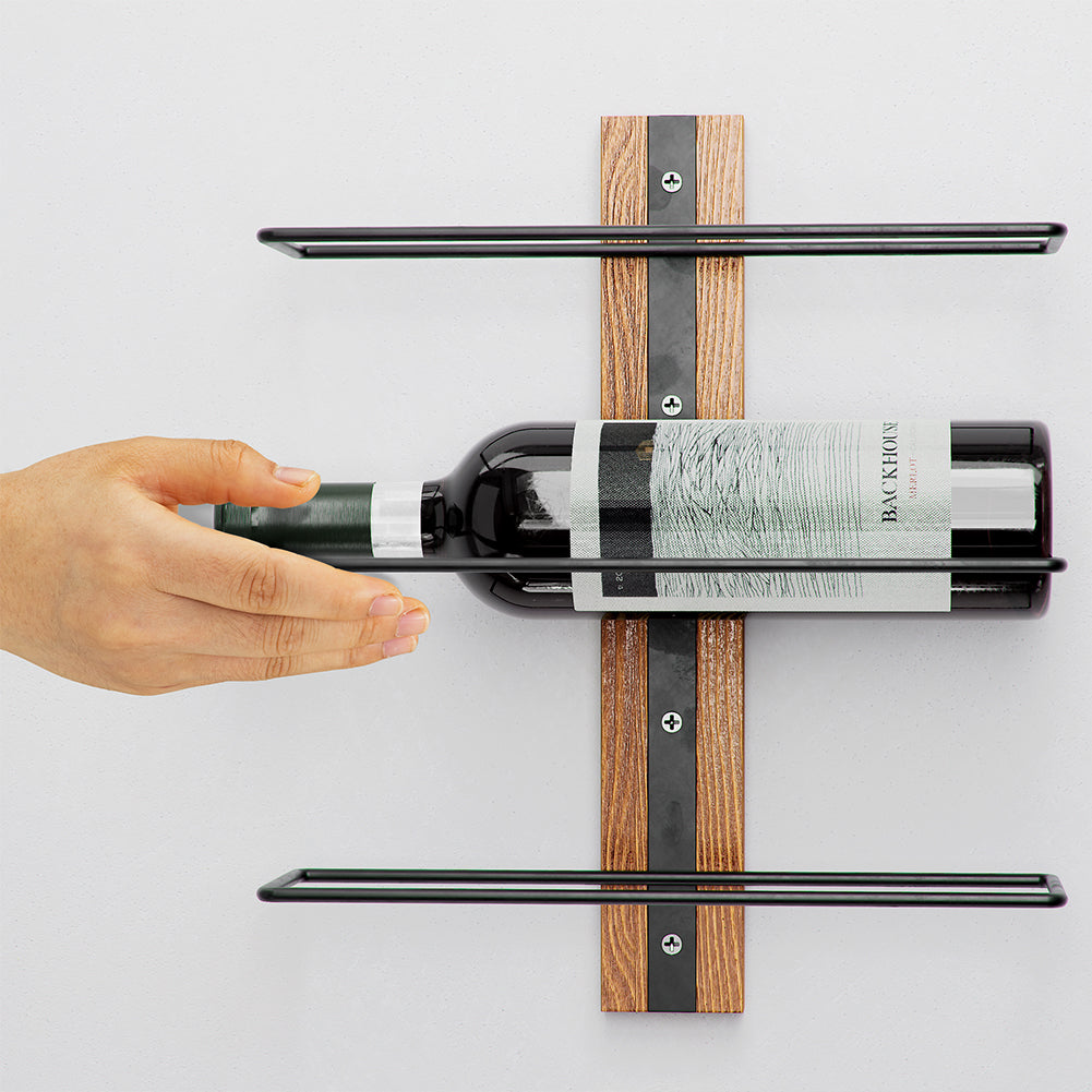 Il portabottiglie da parete con 3posti per bottiglie, ideale per far invecchiare il vino grazie alla posizione orizzontale, il portabottiglie di Shally Dogan garantisce una priorità ed una qualità assoluta.