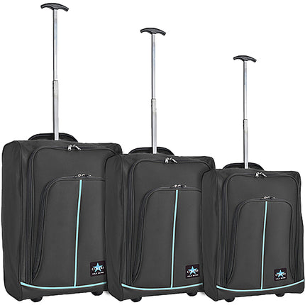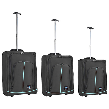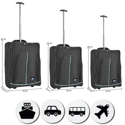 1 x Set 3 Valigie Morbide Trolley da Viaggio Nero Bagaglio a Mano 50-55-60 cm