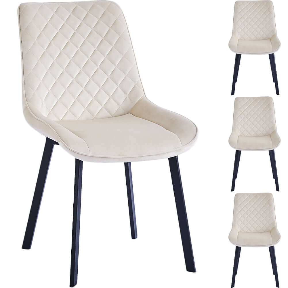 Set 4 Sedie da Pranzo Rivestimento Velluto Beige Sedia Ufficio Casa Ergonomica