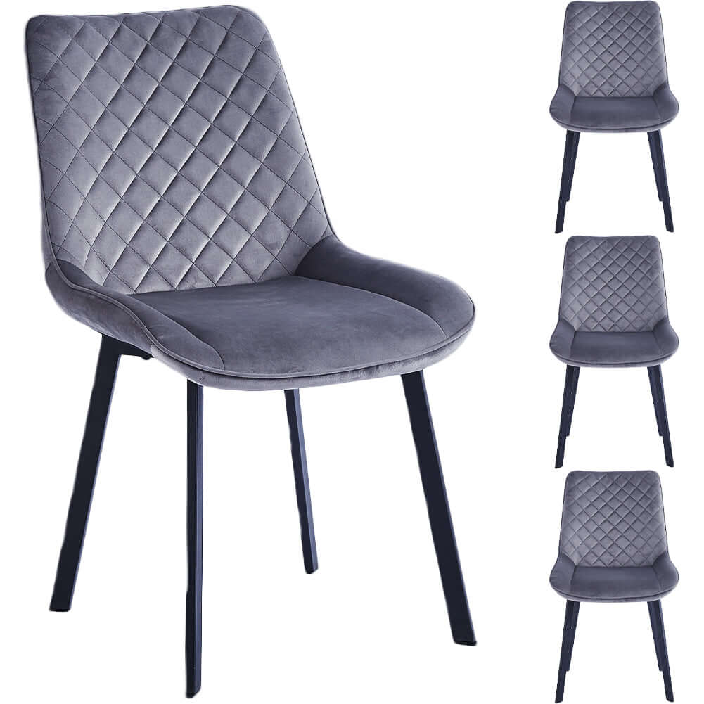 Set 4 Sedie da Pranzo Rivestimento Velluto Grigio Sedia Ufficio Casa Ergonomica