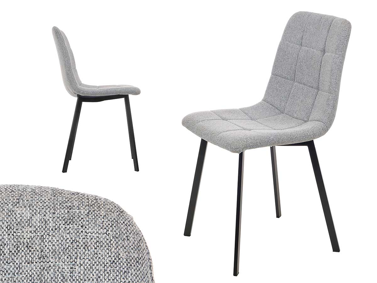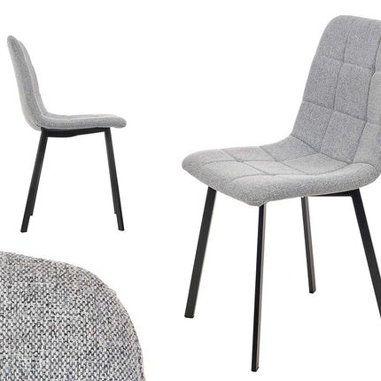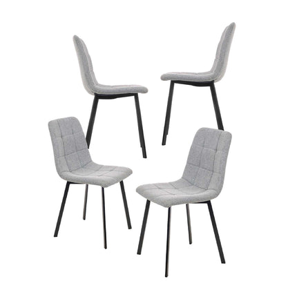 Set 4 Sedie Moderne in Metallo Seduta Imbottita e Trapuntata Tessuto Grigio