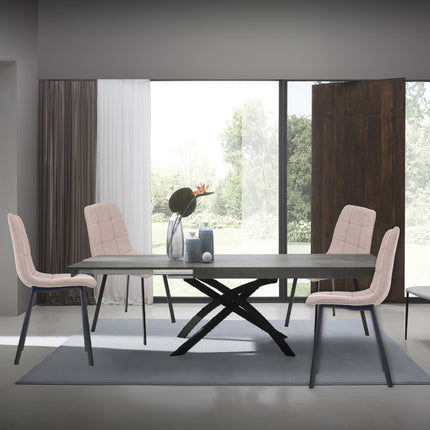 Set 4 Sedie Moderne in Metallo Seduta Imbottita e Trapuntata Tessuto Marrone