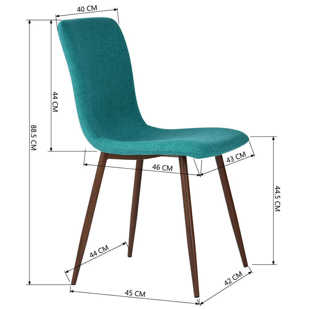 1 x Set 4 Sedie per Sala da Pranzo Turchese con Gambe Effetto Legno Seduta Ergonomica