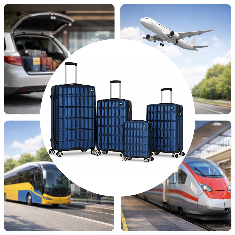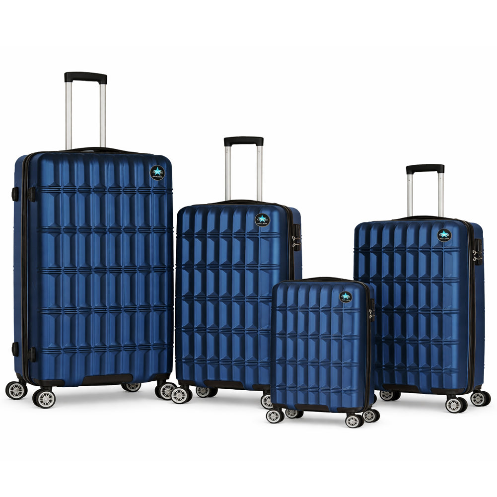 1 x Set 4 Valigie con Scocca Rigida e Resistente Trolley Viaggio Blu Ruote Easy Roll