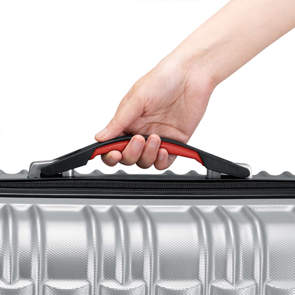 Le valigie trolley hanno 2 maniglie ciascuno con inserti in morbido gel, ergonomico e comodo per ogni spostamento e per evitare affaticamento o dolori alle mani.