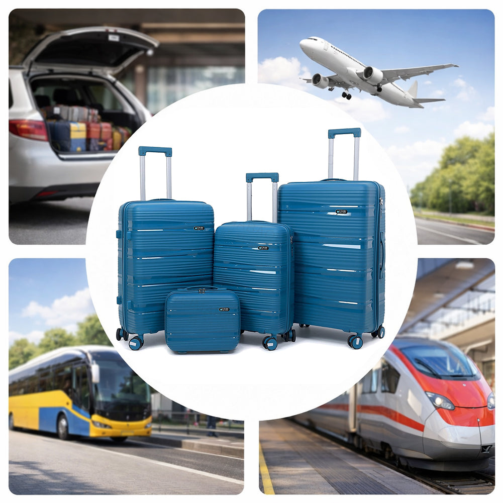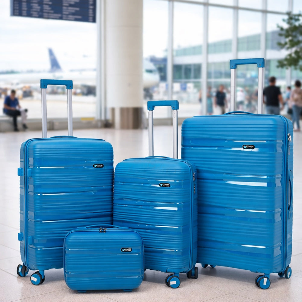 1 x Set 4 Valigie Rigide e Beauty Case da Viaggio Blu con Maniglia Telescopica
