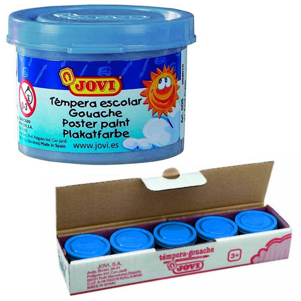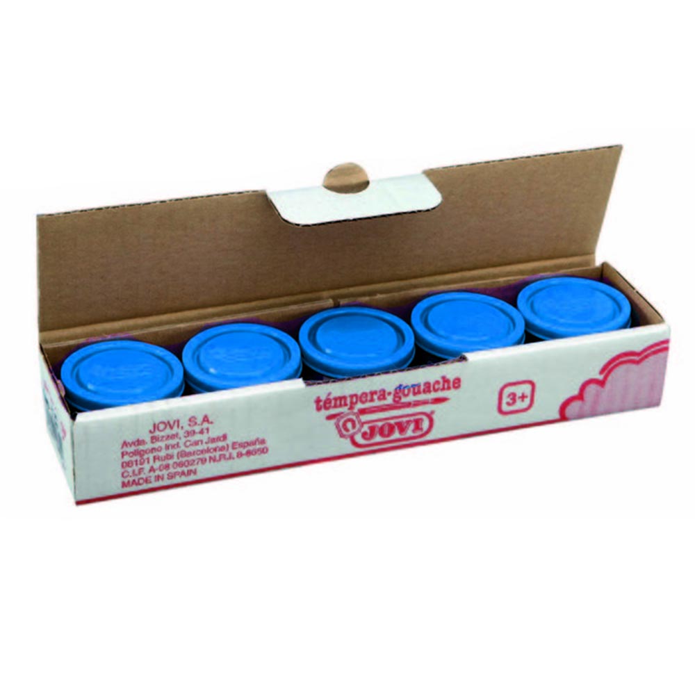 Set 5pz Barattolini Tempera Pittura Disegno Bambini Azzurro Cyan Barattolo 35ml