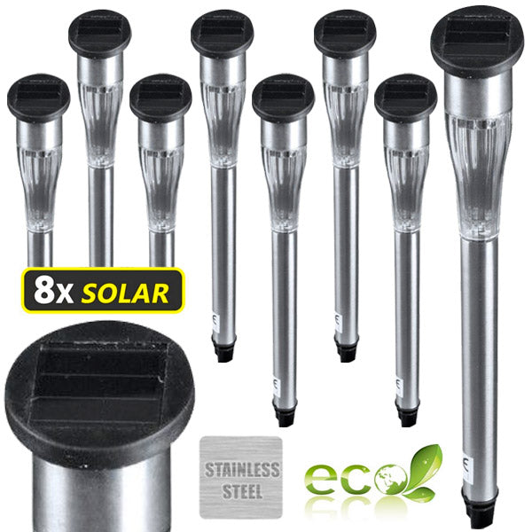 8 x Lampada da giardino a LED ricarica solare alta 28 cm
